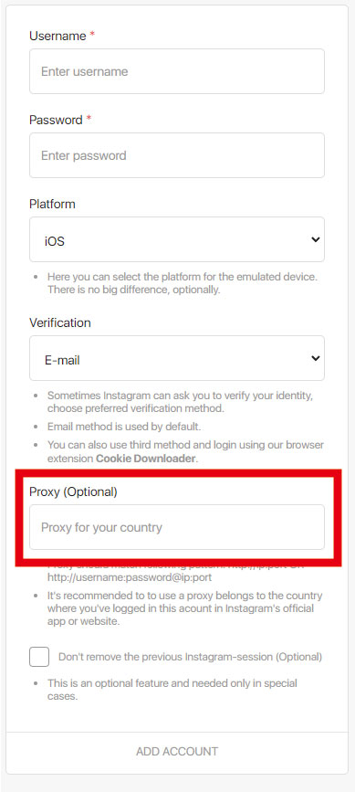 ※プロキシはアカウント登録時に必ず下記の箇所に入力してください