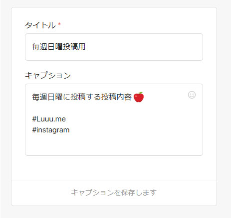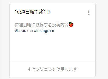 キャプション機能では、投稿の文章を予め設定して保存しておくことができます。