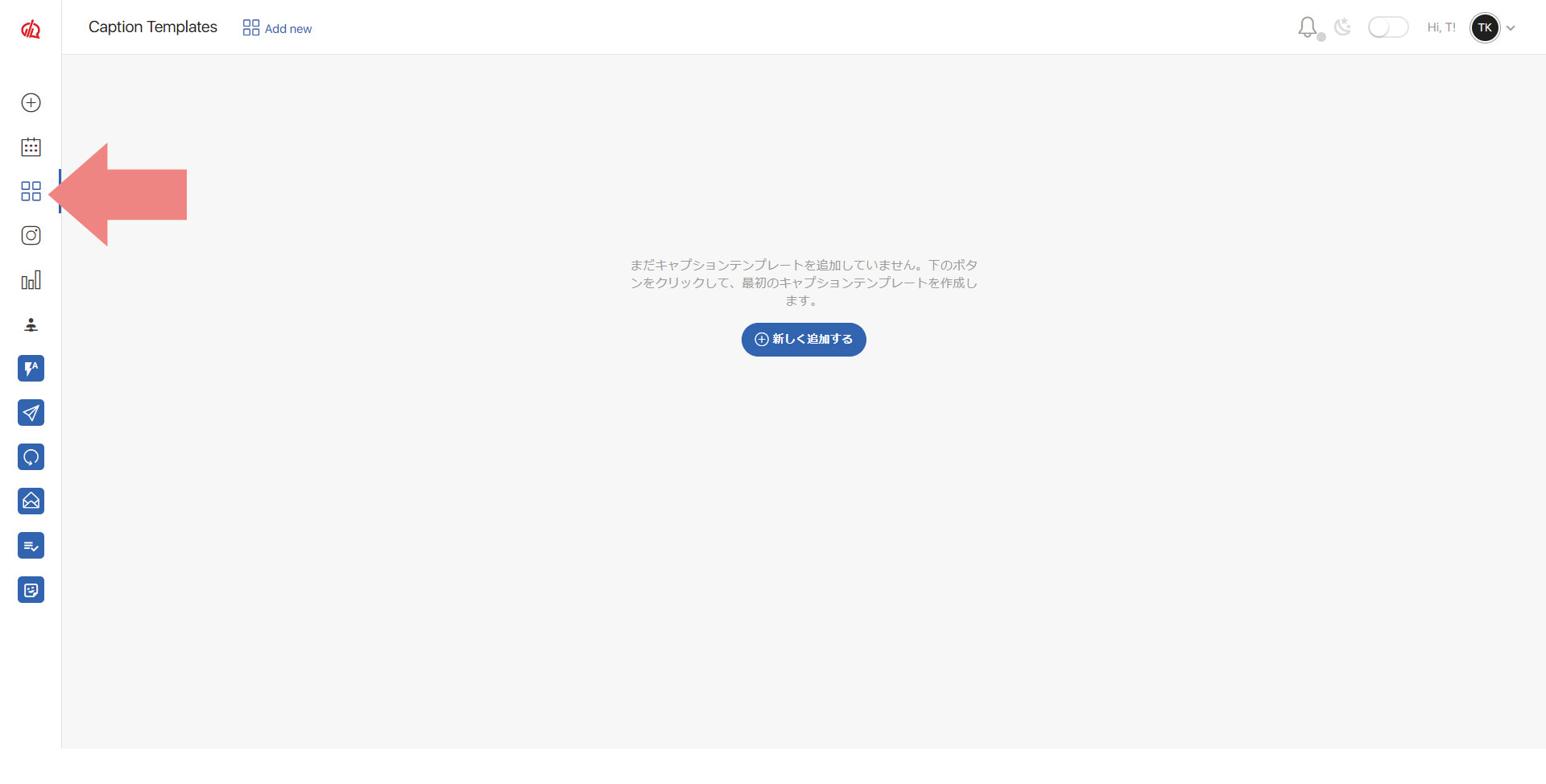 使い方はまず、画面左上部にある【Add new】をクリックして新規のキャプションを作成します。